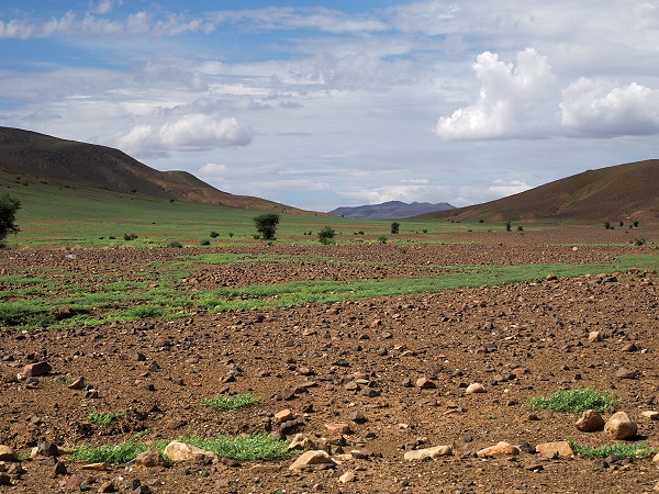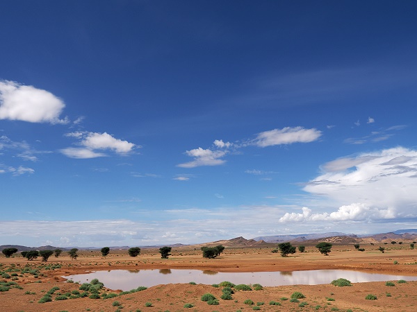 Wir näherten uns Zagora und die Landschaft wurde immer grüner. Es gab sogar kleine Seen und stellenweise weggespülte Straßenräder oder defekte Brücken, Anzeichen von heftigen Regenfällen ein paar Wochen zuvor. Aber auch die ersten Sanddünen tauchten am Straßenrand auf.