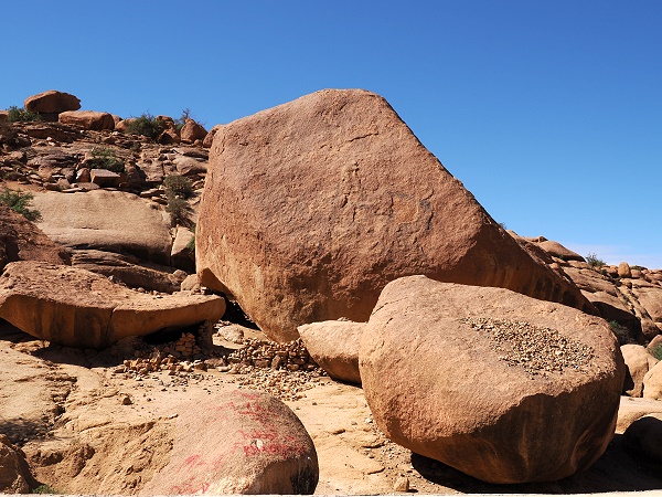 Die Felsen rund um Tafraoute gehören zu den ältesten Marokkos und stammen aus der frühesten geologischen Erdgeschichte. Der rötliche Granit wurde durch Wind und Wetter über Jahrmillionen geformt, wobei natürliche Prozesse die scharfen Kanten der Felsen abrundeten. So entstehen oft bizarre Formationen wie der Löwenkopf, Finger Mountain oder riesige, balancierende Felsbrocken.