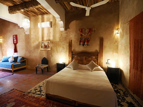 Zufällig hatten wir danach noch ein weiteres Hotel gebucht, das ebenfalls Juan gehört: die Lodge Hara Oasis in Agdz. Ein drittes befindet sich in Ouarzazate, das Dar Kamar, mitten in der Taourirt-Kasbah. Alle sind in einem ähnlichen Stil eingerichtet.