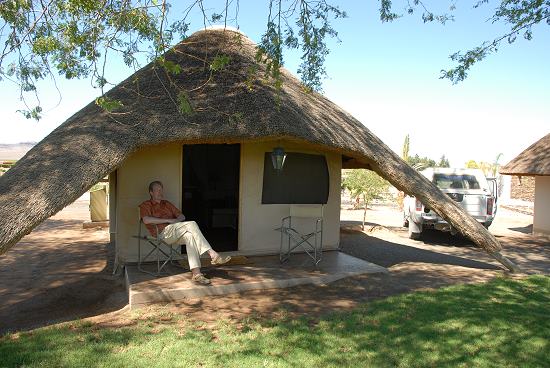 Einen ebenso schönen Blick hat man vom Norotshama River Resort, unserem nächsten Übernachtungsort auf der Farm Aussenkehr. Tshama ist eine Melonenart, die an den Sraßenrändern in Namibia wächst, was Noro bedeutet kann ich nicht sagen.