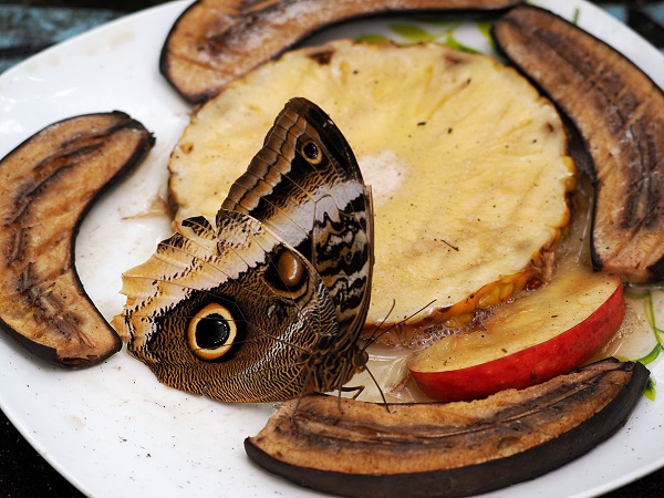 Der Garten ist hier speziell gestaltet, um die natürlichen Lebensbedingungen der Schmetterlinge nachzubilden. Hier kann man sie dabei beobachten, wie sie Nektar trinken und sich paaren. Jede Art hat eigene Pflanzen, an denen sie ihre Eier ablegen. Angestellte sammeln diese dann nach Arten getrennt ein für die Aufzucht der nächsten Generation.