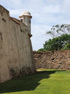 Man spaziert vorbei an dicken Steinmauern, Kanonenscharten, Pulverlager und Wachtürmen. Eine typisch spanisch-barocke Militärarchitektur, hier erstaunlich gut erhalten, teils restauriert, aber noch mit vielen originalen Details. Es gibt eine untere und eine obere Batterie und eine Hügelfestung. Davor liegt die Batteriefestung San Jerónimo. Auch am späten Nachmittag war es noch recht heiß, aber an der Mauer wehte ein angenehmer Wind vom Fluss herauf.