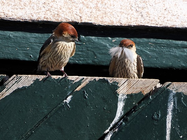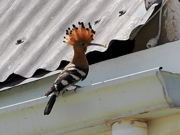 Der Wiedehopf ist in weiten Teilen Afrikas verbreitet und auch hier gab es ein brütendes Paar. Hoepoes sind Höhlenbrüter und es hat eine Weile gedauert, bis wir ihren Brutplatz entdeckt haben. Meist sassen sie auf dem Gartenzaun oder auf einem kleinen Baum, aber bei einem Anflug entdeckten wir, dass sie direkt unter dem Dach vor der Überwachungskamera ihr Nest hatten. Wiedehopfe bauen kein Nest im eigentlichen Sinn, die Eier liegen auf dem Untergrund der Höhle. Die Brutstätte kann stark riechen, da Weibchen und Jungvögel ein abwehrendes Sekret absondern, ein typisches Merkmal der Art. Das hat man aber nicht bis unten zur Veranda gerochen.