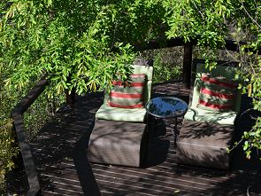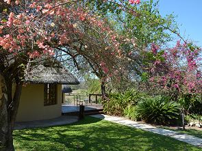 Angeboten werden fünf rustikale, mit Ried gedeckte Rondavels mit Blick in den Garten, die in einer Gruppe angeordnet sind. Dann gibt es noch sechs Luxus-Suiten mit einer eigenen Aussichtsterrasse. Von hier aus hat man den direkten Blick auf das trockene Flussbett, zahlt dafür natürlich auch mehr. Die Rondavel Bewohner haben den gleichen Blick von der Terrasse am zweiten Pool, der sich direkt vor den Unterkünften befindet und mehr Privatsphäre bietet als der Pool vor dem Hauptgebäude. Wer es ganz besonders privat und teuer mag, der bucht die Honeymoonsuite mit zusätzlicher Außendusche und einem eigenen Plunge Pool.