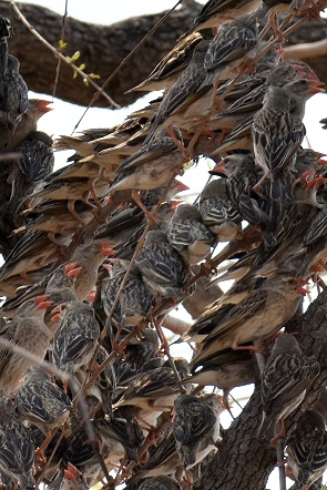 Der Blutschnabelweber (Quelea quelea) ist eine Singvogelart aus der großen und bunten Familie der afrikanischen Webervögel mit insgesamt 119 unterschiedlichen Arten. Seine Körperlänge beträgt etwa 12-13 cm bei einem Gewicht von 30 Gramm. Der rote und relativ kräftige Schnabel ist ihr Markenzeichen. Zur Brutzeit tragen die Männchen zur deutlichen Unterscheidung eine schwarze Gesichtsmaske.