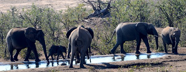 Tagsüber kommen Vögel zum Bird Bath und wir sahen flinke Hörnchen, Klipspringer auf den Felsen und sogar einen scheuen Sharpe´s Grysbok. Am Wasserloch komnnten wir in der Dämmerung Hyänen und einen seltenen Streifenschakal beobachten. Tagsüber kamen Elefanten, Fischadler, Warzenschweine und Büffel an das Wasserloch.