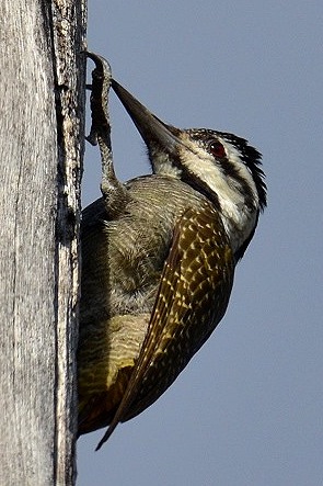 Noch drei weitere Spechtarten leben im Kruger: der Kardinalspecht (Dendropicos fuscescens - Cardinal woodpecker), der Namaspecht (Thripias namaquus - Bearded woodpecker) und der Goldrückenspecht (Mesopicos griseocephalus - Olive woodpecker).