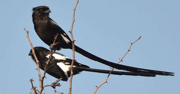 Vier Würgerarten leben im Krüger: Neuntöter (Lanius collurio - Red-backed shrike), Südlicher Fiskalwürger (Lanius collaris - fiscal shrike), Weißscheitelwürger (Eurocephalus anguitimens - White crowned shrike) und mein Liebling, der Elsterwürger (Urolestes melanoleucus - Magpie shrike).