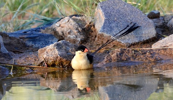 Echte Vogelfreunde und Ornithologen kennen sich aus mit den Familien der Monarchen, Fliegenschnäpper, Schnäpperwürger, Würger, und Buschwürger. Aus der Monarchen-Familie leben nur zwei Arten im Kruger Nationalpark: der Blaumantel-Haubenschnäpper (Trochocercus cyanomelas - Blue mantled crested flycatcher) und der hübsche Graubrust-Paradiesschnäpper (Terpsiphone viridis - African paradise flycatcher).