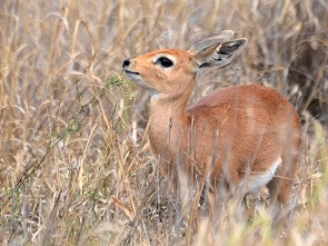 Von hier aus sind es dann noch weitere 8 Kilometer in Richtung Süden, bis zur Abzweigung zum Shibavantsengele Lookout. Auch hier war alles sehr trocken. Etwas weiter südlich stand dann ein Steenbock am Wegrand, der sehr unscheu war und wir hatten auf der S50 in Richtung Tropic of Capricorn Loop noch einmal das Glück eine einzelne Tsessebe Antilope direkt am Weg zu sehen.