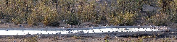 Tagsüber kommen Vögel zum Bird Bath und wir sahen flinke Hörnchen, Klippspringer auf den Felsen und sogar einen scheuen Sharpe´s Grysbok unter den Felsen hinter dem Grillplatz. Am Wasserloch konnten wir in der Dämmerung Hyänen und einen seltenen Streifenschakal beobachten. Tagsüber kamen Elefanten, Fischadler, Warzenschweine und Büffel an das Wasserloch.