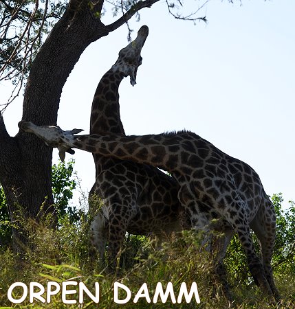 Nur die Giraffenbullen vor uns kämpften immer noch, hatten sich aber mittlerweile dabei von der Straße entfernt und standen unter einem großen Baum. Somit konnten wir vorbei fahren in Richtung Orpen Dam.