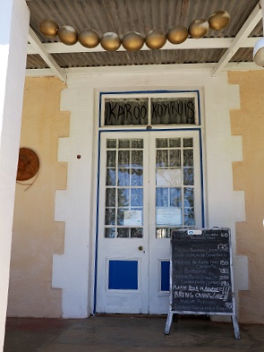 So waren wir mit Ute und Peer an einem Abend in der Karoo Kombuis angemeldet. Ein charmantes, gemütliches Restaurant unweit der Hauptstraße mit einer kleinen Auswahl, aber außergewöhnlich leckeren Speisen.
