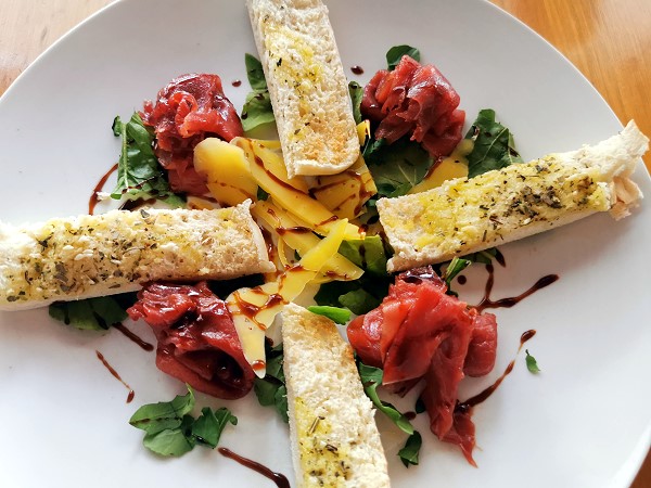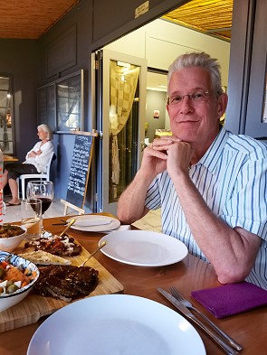 Wir wurden herzlich und ein wenig exzentrisch von dem charmanten Gastgeberpaar Theunis und Michael begrüsst. Die beiden wohnen direkt nebenan und führen das Restaurant seit 27 Jahren, ohne Alkohol-Lizenz. Das bedeutet "bring your own", seinen Wein oder Bier sollte man selbst mitbringen.