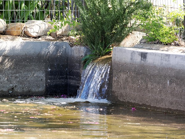Das Wasser fließt durch Schwerkraft vom Dorps River aus den Swartbergen direkt in den Ort. Ein System aus Sperrklappen und manuell betriebenen Schleusen versorgt auf diese Weise zahlreiche Häuser und Farmen entlang des Weges nach einem vordefinierten Zuteilungsplan. Dieses System ermöglicht es den Bewohnern, trotz der trockenen Karoo-Umgebung üppige Gärten und Obstplantagen zu bewässern. Die Wasserrechte sind oft an die Grundstücke gebunden und werden seit Generationen nach festen Zeiten vergeben. Da muss man zu dieser eine Stunde parat stehen, um die Zuleitung zum eigenen Wasserbassin zu öffnen und nach Ablauf der Zeit wieder zu schließen.