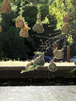 Das Wasser zog Frösche an und diese wiederum Reiher und Eisvögel. In den Zweigen über dem Wasser bauen Webervögel gerne ihre runden Nester.