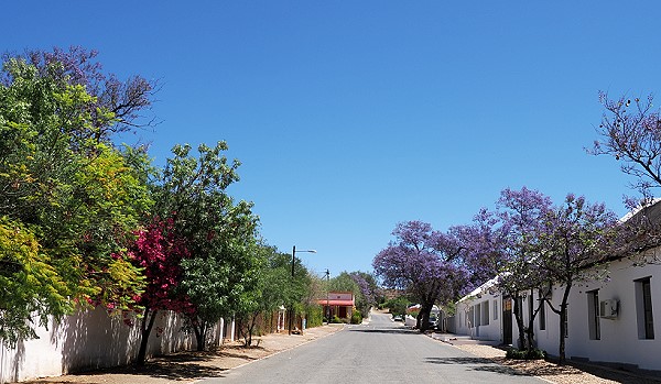 Obwohl sie heute charakteristisch für viele südafrikanische Städte sind, besonders Pretoria schmückt sich mit blühenden Aleen, stammen Jacarandas ursprünglich aus Südamerika. In Prince Albert harmonieren sie besonders schön mit den weißen Fassaden der historischen Häuser.