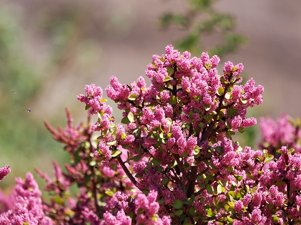 Selbst der Speckboom (Portulacaria afra) bildet zu dieser jahreszeit kleine, eher unauffällige Blüten aus, die jedoch bei einer Massenblüte sehr dekorativ wirken können. Sie sind sternförmig und sehr klein, mit einem Durchmesser von etwa 2 bis 3 Millimetern. Sie besitzen fünf Blütenblätter und die Farbe variiert zwischen blassrosa, malvenfarben oder violett. Auch diese Blüten sind extrem nektarreich und locken zahlreiche Insekten wie Bienen sowie insektenfressende Vögel an. Eine reiche Blüte wird oft durch Trockenstress in Kombination mit viel direktem Sonnenlicht ausgelöst.