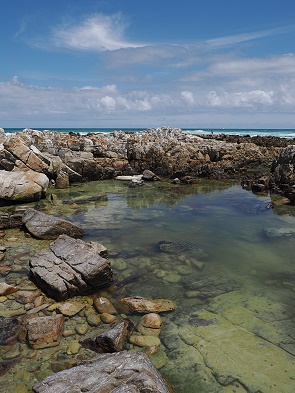 Hier findet man die an der Südküste Afrikas übliche Ansammlung an Ferienhäusern in unterschiedlichen Stilrichtungen bunt zusammengewürfelt mit wenig Grün. Es gibt mittlerweile sowas wie ein kleines Zentrum mit ein paar Restaurants, die Fischgerichte anbieten.