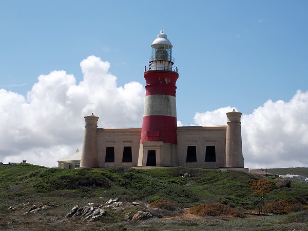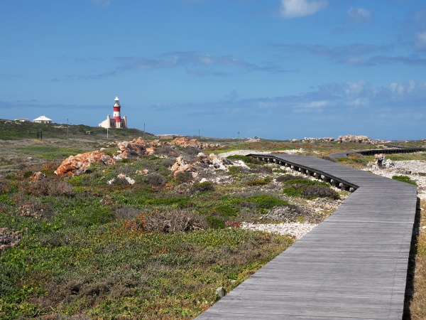 Der markante Leuchtturm von Cape Agulhas ist eines der markantesten Bauwerke am südlichsten Punkt Afrikas und zugleich der zweitälteste noch aktive Leuchtturm Südafrikas. Er wurde 1848 in Betrieb genommen, nachdem die Küste wegen zahlreicher Schiffswracks als besonders gefährlich galt. Der massive, weiß getünchte Steinturm steht bewusst etwas erhöht im Hinterland, um bei Sturm und schlechter Sicht besser wahrgenommen zu werden.