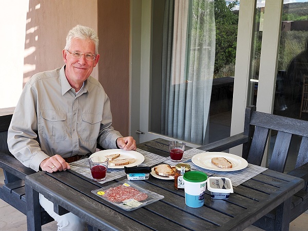 Am ersten Abend machten wir uns scharfes Hühnchen mit Butterchicken-Sauce von Brenda´s und tranken dazu einen leckeren Topiari Shiraz 2016. Am zweiten Abend stand Blesbok Sirloin aus Cradock mit Reis und Gemüse von Woolworth auf dem Speiseplan. Dazu einen Red Blend namens CL von Oldenburg.