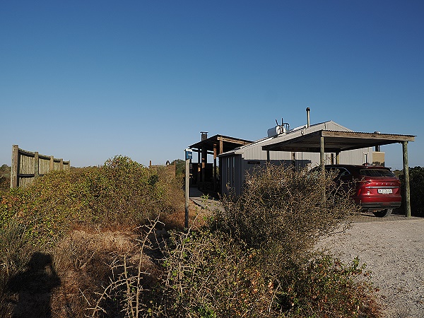 Die Einfahrt zum Rocherpan Camp ist gut mit den braunen "CapeNature"-Schildern markiert. Sobald man das Haupttor passiert hat, führt eine kurze Schotterpiste zum Büro und dann weiter zu den Cottages. Diese Piste ist normalerweise in sehr gutem Zustand und problemlos mit einem normalen PKW befahrbar.
