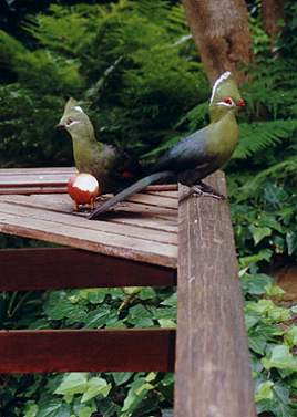 Wir lagen jeden Morgen mit Kamera auf der Lauer und waren dann sehr enttäuscht, weil keiner kam, aber zu meinem Geburtstag bekam ich nicht nur ein Muffin mit Kerzchen und herzliche Glückwünsche, sondern auch das nebenstehende Bild von 2 jungen Louries von Marianne und Johann geschenkt.