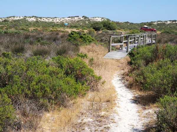 Auch wenn hier kein Wasser in der Pfanne ist, es gibt noch den riesigen, menschenleeren weißen Sandstrand. Da es ein Meeresschutzgebiet ist, ist die Brandung oft wild und unberührt. Hier kann man einfach immer weiter spazieren gehen, er erscheint fast endlos. Dabei ist man meistens ganz alleine unterwegs. Im Meer darf man schwimmen, im Inland-Gewässer nicht.
