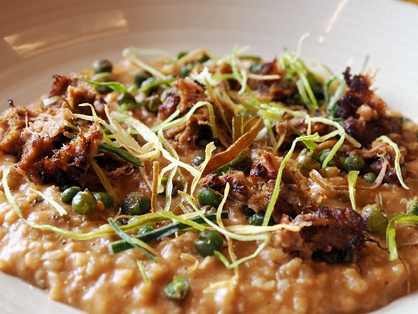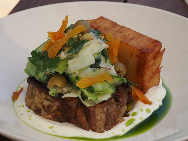 Wir bestellten ein Curry-Mutton-Risotto, das sehr lecker war, und geräucherte Lachsforelle mit Fenchelsalat. Hauptspeisen waren Ravioli mit Oxtail und zwei Saucen für mich. Die Saucen empfand ich als recht schwer und fettig. Michael hatte Duck Leg Confit mit Polentastäbchen - die besser Wahl.