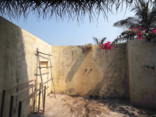 Ein besonderes Highlight ist das halboffene Badezimmer. Die Dusche befindet sich unter freiem Himmel in einem privaten, von Mauern umgebenen Minigarten, was das Duschen unter Palmen und Bougainvilleas oder dem Sternenhimmel ermöglicht. Es gibt viele Handtücher, auch für den Pool.