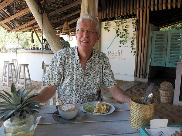Der Kaffee hier ist sehr gut und kommt in allen nur denkbaren Formen aus der hochwertigen Siebträgermaschine. Was uns besonders gut gefiel: Man konnte sich alles Mögliche, was sonst auf der Getränkekarte steht, ohne Aufpreis ordern, egal ob Cappuccino, frisch gepresste Säfte von verschiedenen Früchten oder zu unserer großen Freude auch Kokosnüsse.