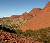 Der Uluru–Kata-Tjuta-Nationalpark liegt im roten Herzen von Australien. Zwei Stätten gaben dem Park den Namen: der Monolith Uluru (früher Ayers Rock genannt) und die Felsknubbel Kata Tjuta (früher die Olgas). Für die Besitzer des Landes, die Anangu, ist dies ein heiliger Ort und die Regeln im Park sind sehr restriktiv. Hier ist man inmitten von Touristenhorden zwar selten alleine, aber ein Besuch lohnt sich auf jeden Fall.