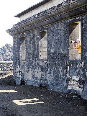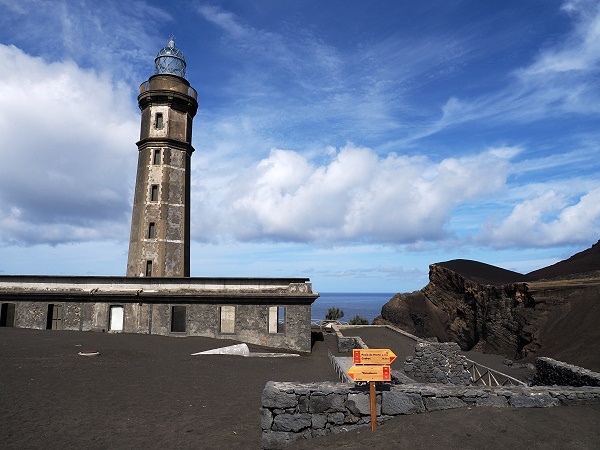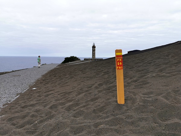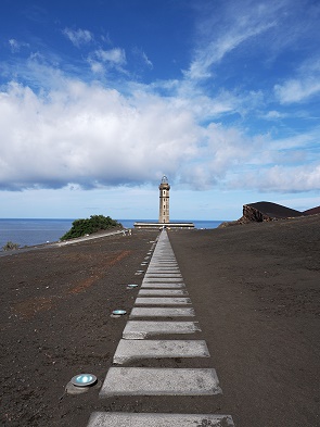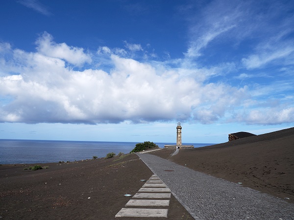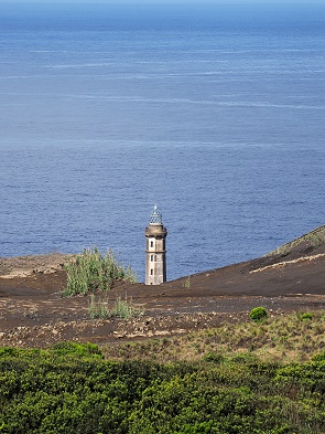 Der Leuchtturm Farol da Ponta dos Capelinhos, einst direkt am Meer, stand nach dem Ausbruch plötzlich weitab der Küstenlinie im Vulkansand. Er wurde 1903 an der Westspitze Faials erbaut, um Schiffe vor den gefährlichen Klippen zu warnen.