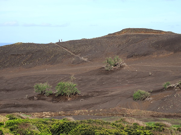 Die schwarz-graue, staubigen Sandoberfläche aus Asche ist einzigartig. Sie unterscheidet sich stark von den Lavaausbrüchen, die beispielsweise in Island aufgetreten sind. Dort sieht man hauptsächlich dunkle, schwarze, heiße Lava. Hier sieht man hauptsächlich Asche.