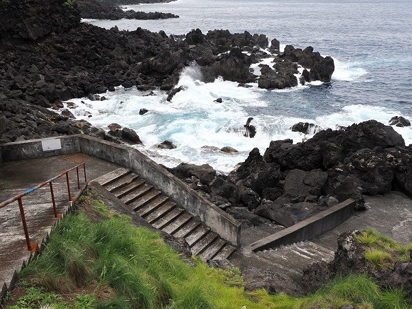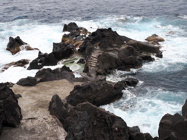 Unser nächstes Ziel war der etwas holprige Abstecher hinunter zur Küste zum Porto de Eira. Das ist ein kleiner, abgelegener Badeort an der Nordküste der Insel Faial, in der Gemeinde Cedros. Einst ein kleiner Fischerhafen, ist er heute ein besonderer Ort für Naturliebhaber und geübte Schwimmer.
