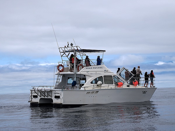 Ein gewisses Maß an Lärm nutzen die Tourveranstalter aber zur Sicherheit: Die Motoren laufen immer im Leerlauf, damit die Wale beim Auftauchen aus der Tiefe hören können, dass dort oben ein Hindernis schwimmt. Normalerweise ist das Meer ja leer und die tonnenschweren Tiere können einfach so auftauchen wo und wann sie wollen. Dadurch wurden schon einige Segelboote, die ja fast lautlos sind, auf hoher See von Walen gerammt, einfach zur falschen Zeit am falschen Ort.