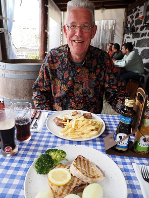 Die Stadt bietet ein paar Restaurants, Cafés und Läden. Da es Mittag war, mussten wir ein paar Schritte laufen, denn wir hatten uns für ein Essen im Restaurant Taberna O Canal entschieden. Das befindet sich direkt neben der Cooperativa Vitivinicola Da Ilha Do Pico (CVIP), der Weinkooperative.