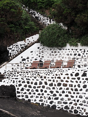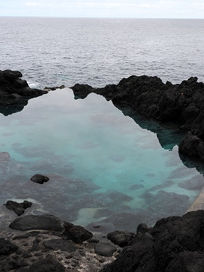 Wunderschön ist das berühmte Naturbecken Poça Simão Dias, das von dunklen Lavasteinen umrahmt ist. Der Weg dorthin führt über schmale Pfade aus Vulkangestein.