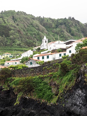 Nur wenige Schritte von den Badebecken entfernt liegt der kleine Hafen der Fajã do Ouvidor geschützt zwischen dunklen Felsen und wirkt fast so, als sei er in die raue Küstenlandschaft hineingeschnitzt worden. Fischerboote schaukeln hier sanft auf dem Wasser, hier gibt es auch Duschen, Toiletten und einige Parkplätze, die Zufahrt ist recht steil.