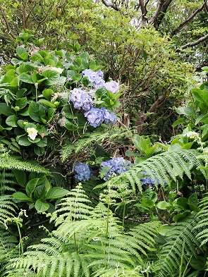 Die Hauptstraße schlängelt sich oberhalb der Klippen durch grüne Weiden in Richtung Südosten, vorbei an Hortensienhecken und freundlichen Kühen. Immer wieder öffnet sich der Blick auf den Atlantik, dessen Wellen hier unermüdlich gegen die schroffe Küste schlagen. Wir halten kurz an einigen Aussichtspunkten, um den Duft von Meer und Erde einzuatmen und die klare Luft zu genießen.