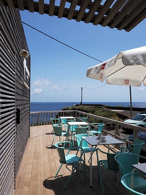 Unmittelbar vor dem schönen Aussichtspunkt mit einer gepflasterten Windrose auf dem Boden, liegt eine kleine Insel, die genau wie der Ort heißt: die Ilha do Topo, ein unbewohntes Eiland und Vogelreservat. Das inzwischen unter Naturschutz stehende Inselchen ist auch die Heimat einer Kolonie von Rosenseeschwalben. Das Blau des Meeres umrahmt es perfekt, einige Immobilienfirmen machen sogar auf Werbeplakaten mit einer Luftaufnahme dieser Insel Reklame.