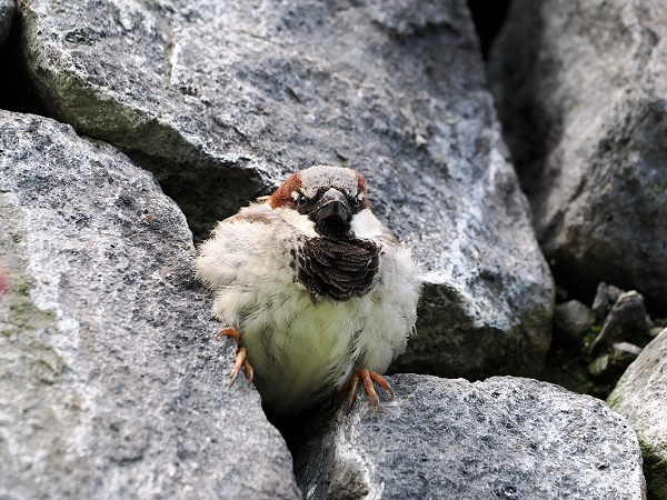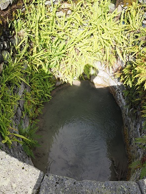 Ein Fußweg hinunter zu den Quellen führt vorbei an einer Steinmauer, in deren Löchern und Ritzen unzählige Spatzen brüten. Immer wenn ein Auto vorbei kommt, fliegen viele von ihnen über die Straße ins gegenüber liegende Grün. Daher liebet vorsichtiger fahren, das muss man aber sowieso denn ein langes Straßenstück zu den Caldeiras besteht hier aus Kopfsteinpflaster. Auch Rotkehlchen gibt es hier viele.