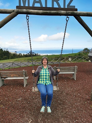 Wir fanden etwas oberhalb an der weiterführenden Straße einen Parkplatz, hier gibt es ca. 15 Stellplätze und es war Mitte Mai noch nicht viel los. Da habe ich erst einmal die Schaukel namens Baloiço da Matriz genossen, die hier steht. Als wir Anfang Juni hier noch einmal vorbei kamen, war alles voll und auch der kleine Imbisstand hatte geöffnet.