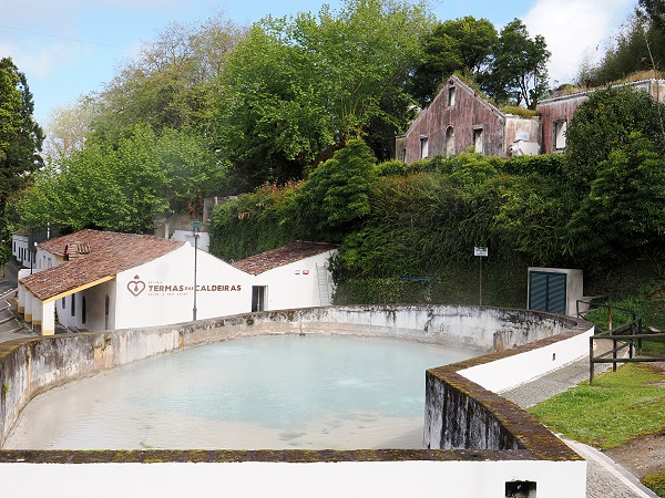 Auf dem Weg dorthin kommt man an einem Thermalbad vorbei, die Anlage mit dem markanten Hauptbau stammt aus dem Jahr 1811, dem sogenannten Banhos da Coroa. Noch älter ist die nahe Steinwanne von 1803.