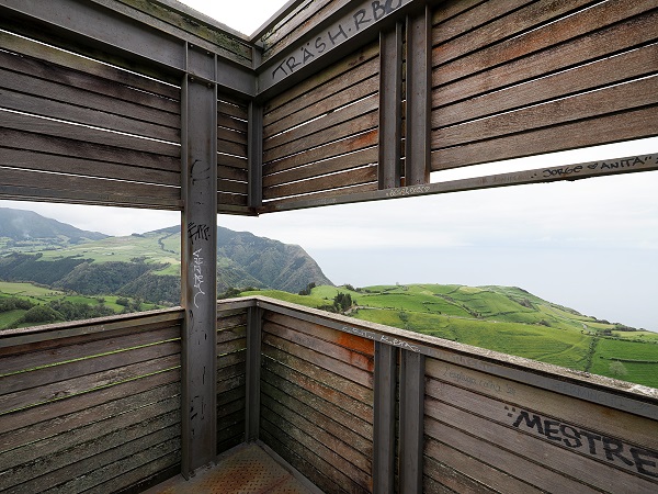 Man kann sich in einem Rahmen fotografieren, die Kühe auf den umliegenden Weiden zählen oder die frechen und hier wenig scheuen Azoren-Finken beobachten. Ein idealer Zwischenstopp für Besucher dieser beliebten Region im Süden der Insel.