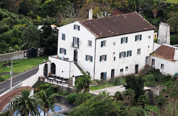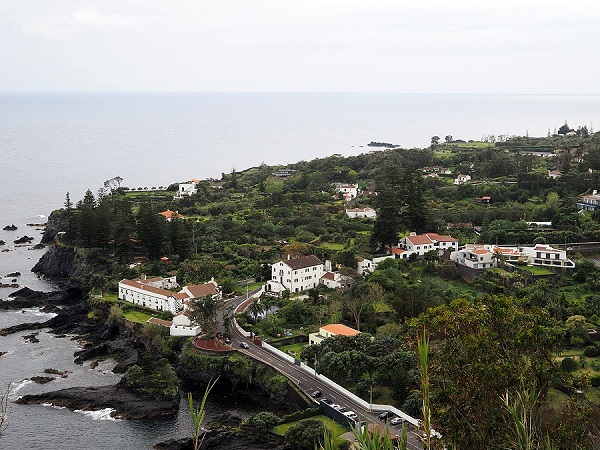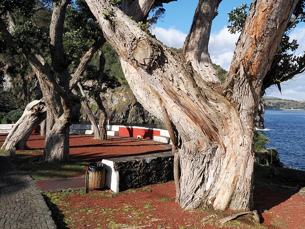 Von dort kann man auch auf die Grundstücke in Privatbesitz schauen, so sieht man einen knallroten Pavillion hinter dem Kloster und auch das Grundstück nebenan ist riesig, mit Tennisplatz und Sportplatz. Leute mit viel Geld, denen hier in Caloura gleich mehrere Grundstücke gehören. In der gesamten Region sind viele luxuriöse Sommerresidenzen zu finden, die von vielen Ausländern als Zweitwohnsitz vor allem im Sommer genutzt werden. Hier findet man auch viele zurückgekehrte Auswanderer, die vor allem in den Vereinigten Staaten viel Geld verdient haben.