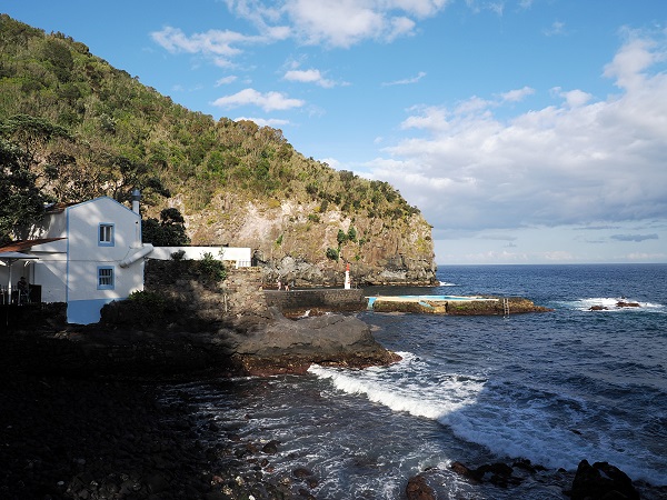 Fährt man die Straße weiter entlang so endet diese in einer Sackgasse am Hafen. Das macht den Ort sehr ruhig, Durchgangsverkehr gibt es nicht. Im malerischen Fischerhafen Porto da Caloura mit lokalem Handfischfang befindet sich eine Anlegestelle für Boote. Geschützt von hohen Basaltklippen, gibt es hier auch Naturschwimmbecken mit klaren Gewässern und Blaue-Flagge-Status und einen Kinderpool. In der Badesaison mit Aufsicht und Rettungspersonal.