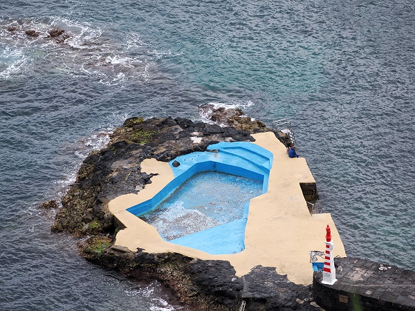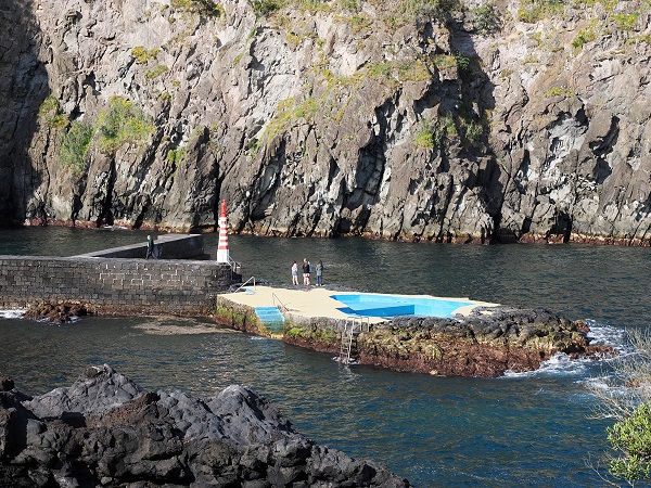 Das Badebecken direkt am Hafen war im Mai noch gar nicht mit Wasser gefüllt. Mit einer durchschnittlichen Wassertemperatur von etwa 22 °C im Sommer sind natürlichen Pools am Hafen überwacht und sicher und werden jährlich mit der Blauen Flagge ausgezeichnet. Die Bucht verfügt über gute Einrichtungen für Badegäste, darunter einen Zugang für Menschen mit eingeschränkter Mobilität, kostenlose Parkplätze, Toiletten, Duschen und eine Snack-Bar.