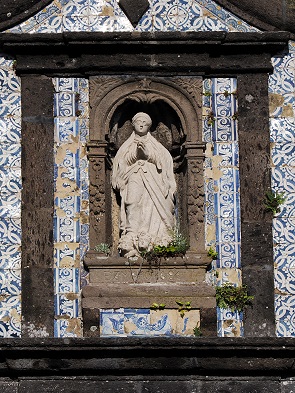 Der Name stammt von den "Calouros", das waren Einsiedlermönche, die sich um 1630 hier niederließen. Sie suchten Zuflucht vor dem Ausbruch des Vulkans Furnas, unter den Einheimischen waren die Brüder als Calouros (Küken) bekannt. Heute befindet sich hier eines der ältesten Klöster der Azoren - das Kloster Nossa Senhora da Conceição. Der schöne, barocke Küstenkonvent aus dem 16.–17. Jahrhundert im Ortszentrum wurde als öffentlicher Ort von Interesse seit 2008 geschützt und hat eine privilegierte Lage am Meer. Leider kann man sich nur die gekachelte Fassade ansehen, denn das ehemalige Kloster ist heute in Privatbesitz und kann wohl nicht besichtigt werden. Das Innere des Gebäudes ist eine wertvolle Sammlung von Fliesen in Blau- und Gelbtönen auf weißem Grund, die wahrscheinlich aus dem 17. Jahrhundert stammen. Vielleicht kann man sie im Rahmen einer Führung ansehen, während unseres Aufenthalts war immer geschlossen und es gab auch keine Hinweise auf eine Öffnung.
