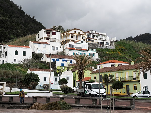 Ribeira Quente beherbergt neben dem wichtigen Fischereihafen auch Wohnhäuser, Gewerbebetriebe und Verwaltungsgebäude. Wir parkten am Hafen auf einem riesigen Parkplatz und streiften zu Fuß durch den Ort. Hier befindet sich der Hauptstrand Praia do Fogo - daher auch der für den Ort viel zu große Parkplatz. Der Fluss bringt schwefelhaltiges Wasser der heissen Quellen aus Furnas hierher, daher stammt auch der Name Ribeira Quente - warmer Fluss. Dies macht das Wasser in diesem Küstenabschnitt bei Besuchern und Einheimischen gleichermaßen beliebt, da es lauwarm ist. Ideal zum Schwimmen im Sommer, dann gibt es hier einen schönen, feinen Sandstrand. Im Winterhalbjahr wird er weggeschwemmt und es bleiben nur ein paar Steine.